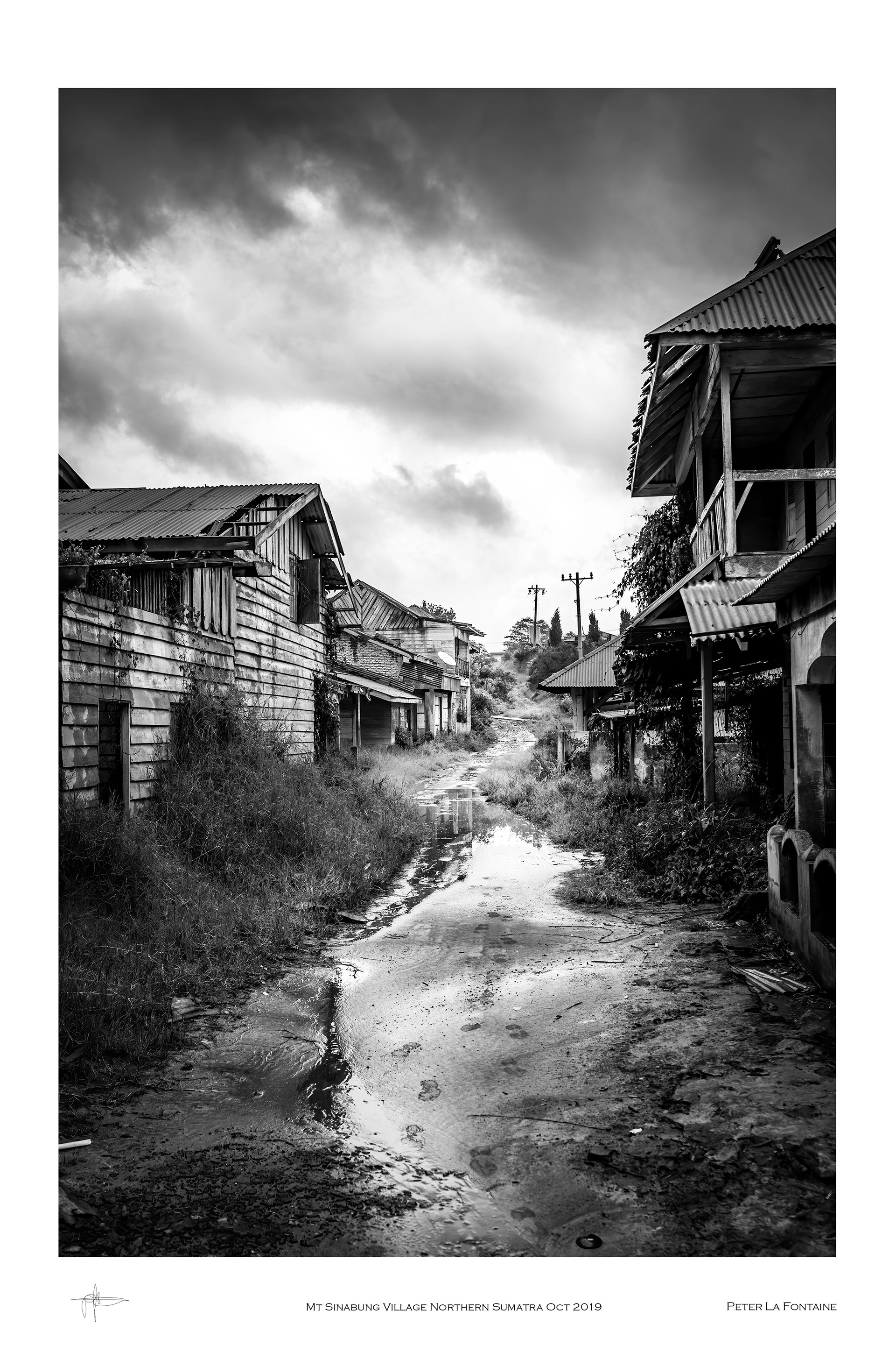 This village at the base of the notorious mt sinabung shows the impact natural disasters like volcano eruptions can have on its neighbouring inhabitants. What's hard to tell from the photo is that actually the houses were at some stage before the eruption very nicely presented homes. While taking this image we were lucky enough to meet with a number of the locals who own these houses and their story obviously sad but yet at the same time were able to smile.