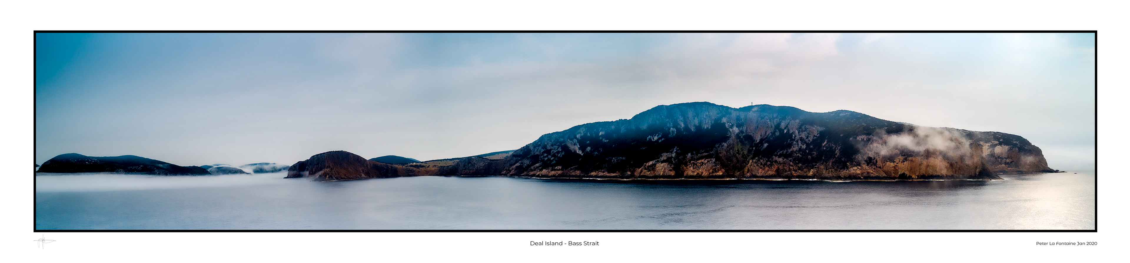 This is deal island in the middle of bass strait victoria. known as the deal island group it is made up of 2 slightly separated islands that provide an extremely well protected anchorage which makes it very popular with cruising boats. this image shows the incredible diverse weather that can occur in bass strait and on this morning the islands are covered in mist while sea "flat as a tack"