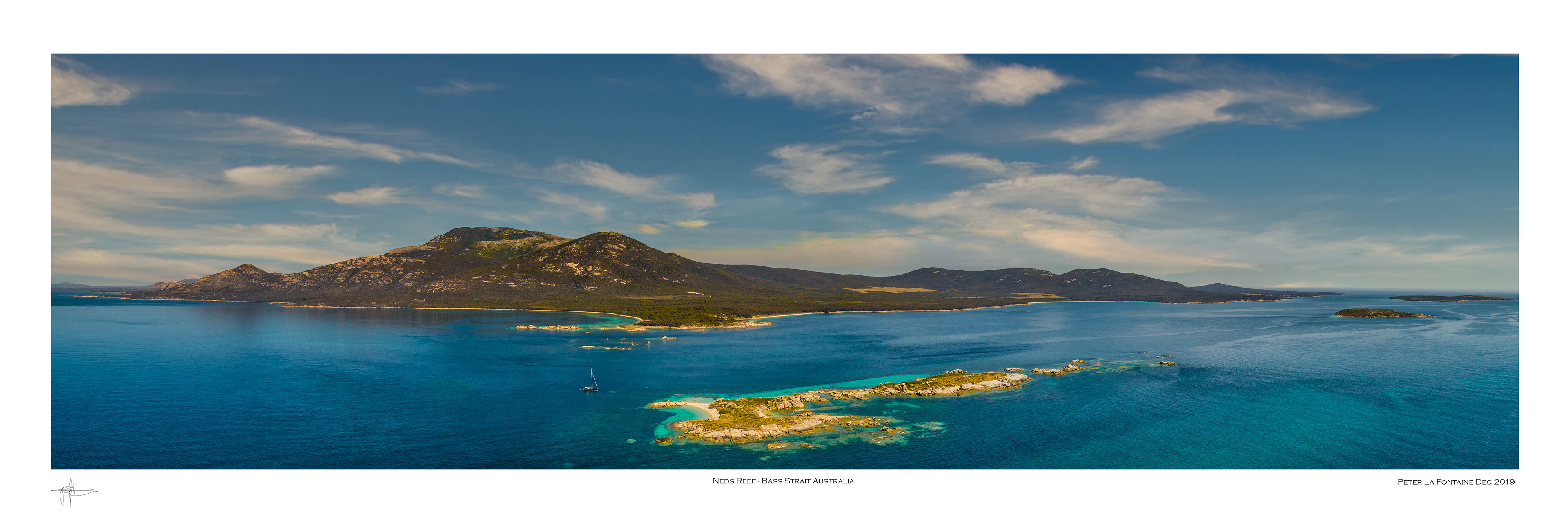 Located between the two Bass Strait islands of Flinders and Lady Baron lies little needs reef a little sandstone island that has its very own beach and home to abundant sea and birdlife. Lady Baron in the background rises up from Bass Strait and is another example of the beauty that exists between Victoria and Tasmania.
